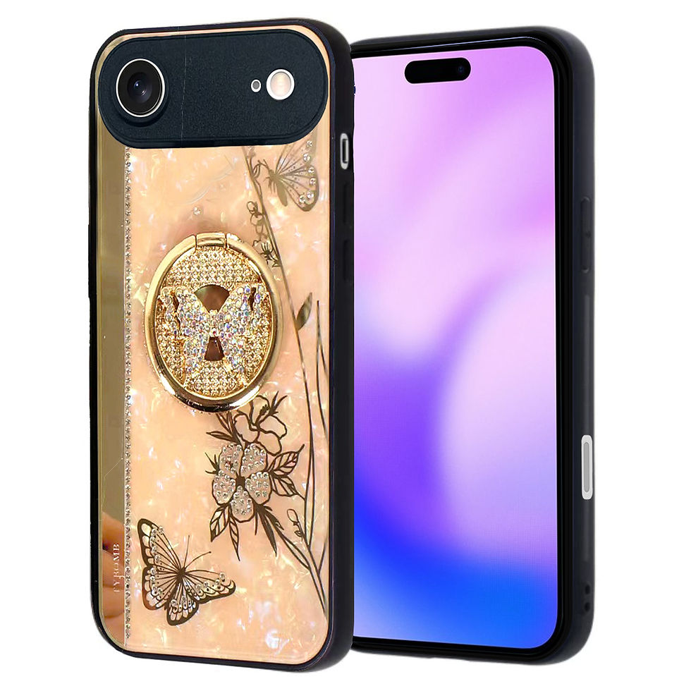 iPhone 17 Air Gold Holographic Dreamy Butterfly Ring Stand Case