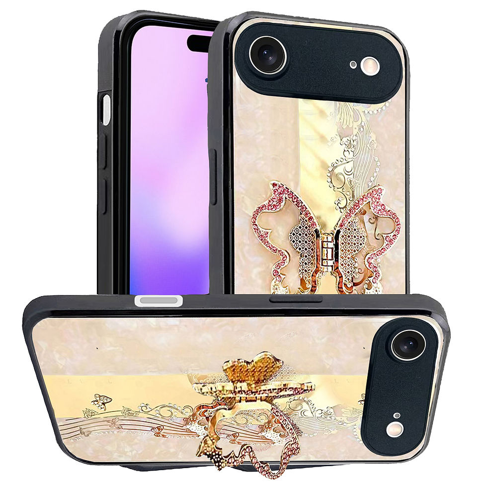 iPhone 17 Rose Gold Holographic Exotic Butterfly Stand Case