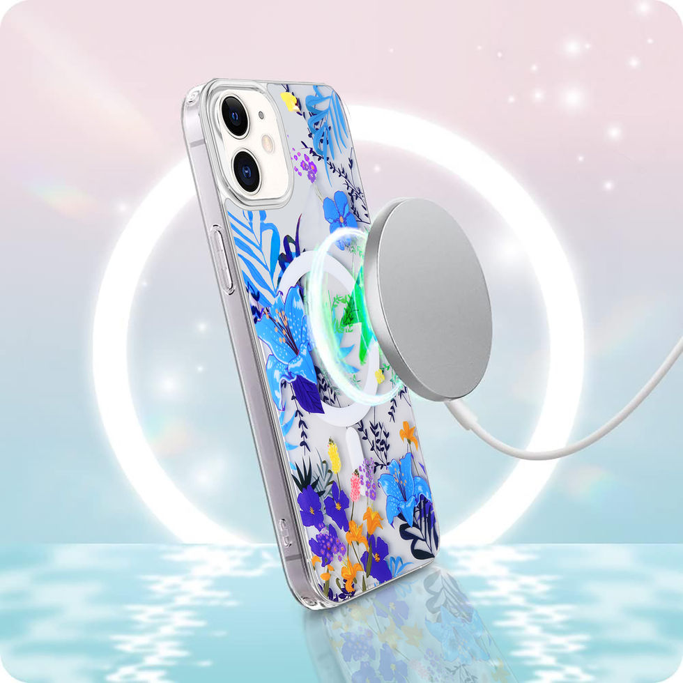 iPhone 11 IMD Blue Purple Flowers Design Clear MagSafe Case