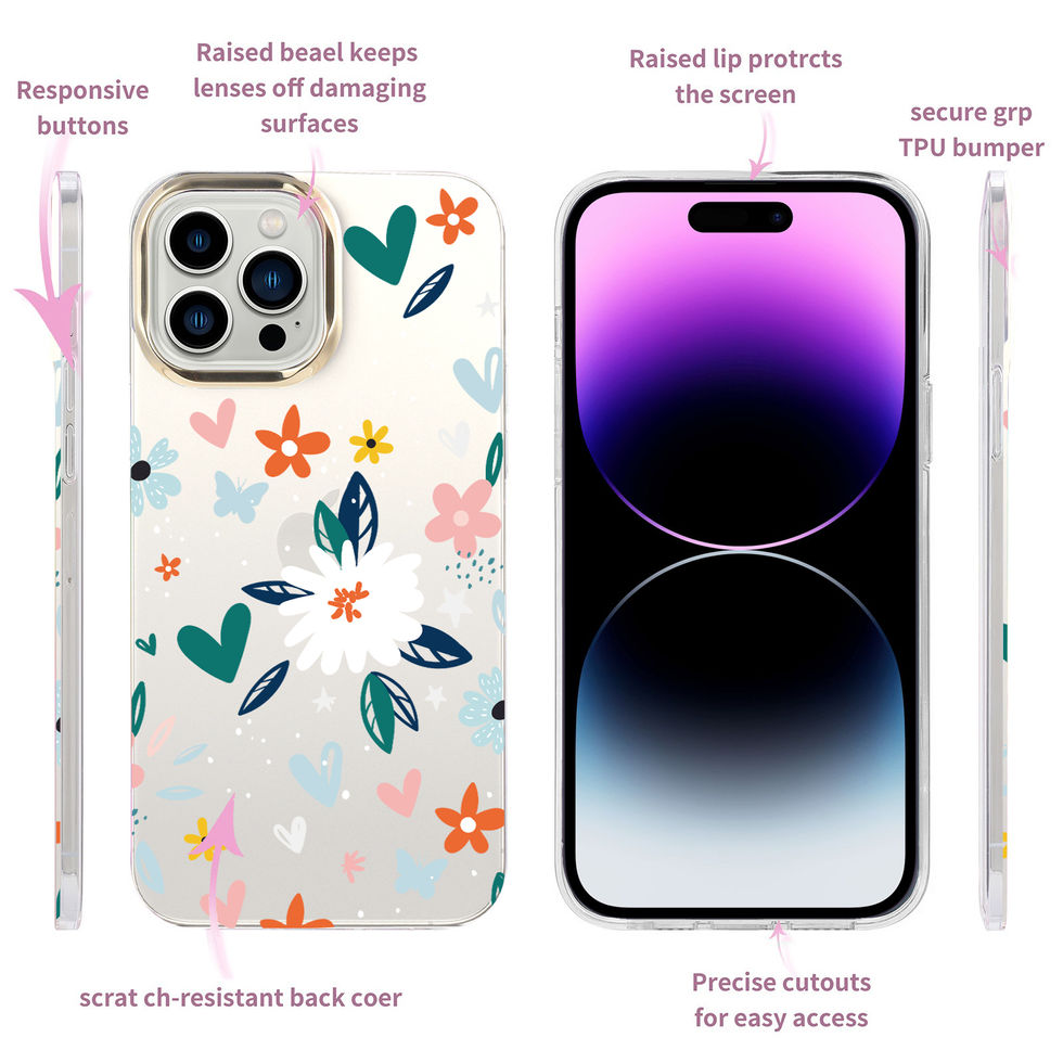 iPhone 14 Pro Max IMD Colorful Daisy Design Clear Case