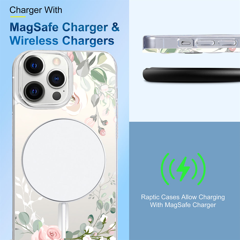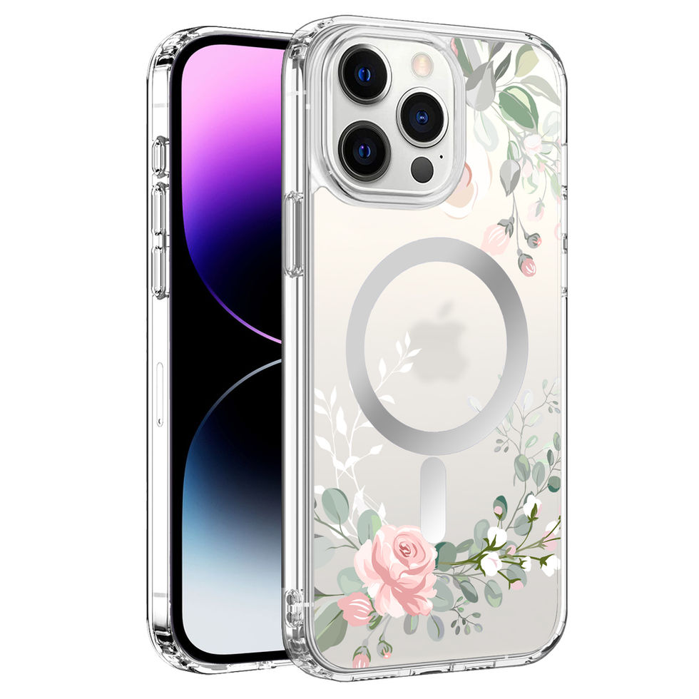 iPhone 14 Pro Max IMD Pink Rose Design Clear MagSafe Case