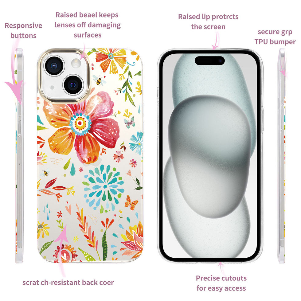 iPhone 15 IMD Blowball Flower Design Clear Case