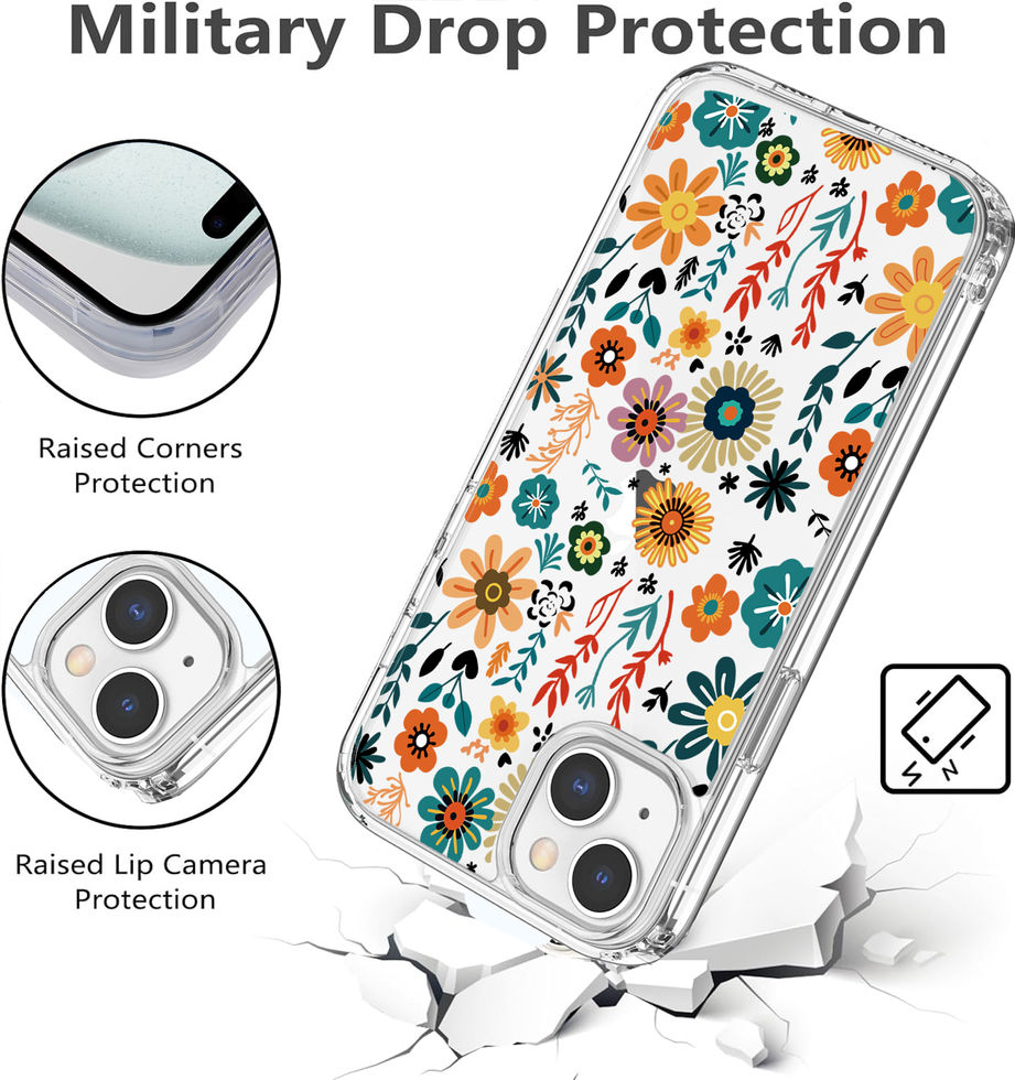 iPhone 15 Plus IMD Daisy Flower Design Clear Case