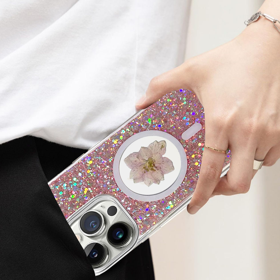 iPhone 15 Pro Max Genuine Pink Larkspur Epoxy Glitter MagSafe Case