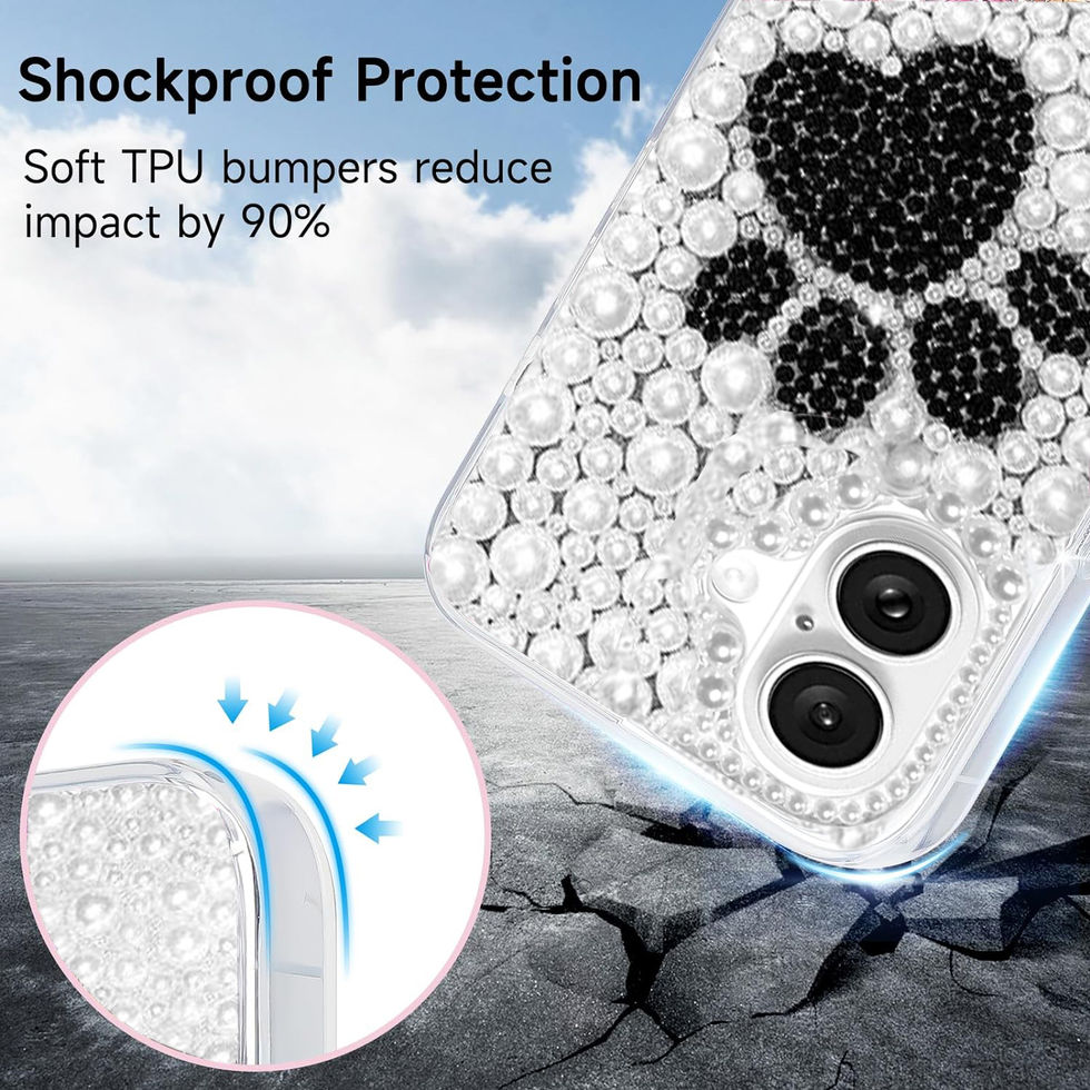 iPhone 16 Cute Paw Black Print Bling Diamond Case