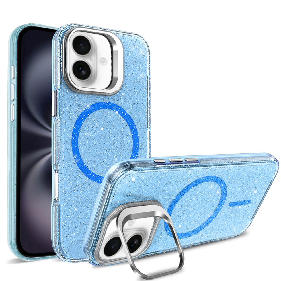 iPhone 16 Plus Galaxy Glitter Clear Camera Lens Kickstand MagSafe Case
