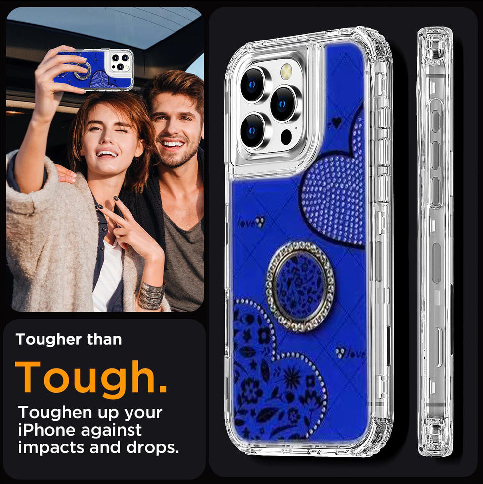 iPhone 16 Pro Max Allure Electric Blue Love 3 in 1 Heavy Duty Kickstand Case