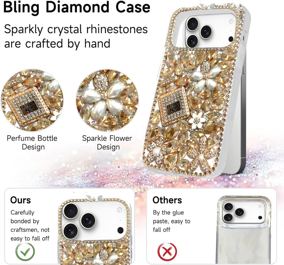 iPhone 17 Pro Perfume Bottle Gold Bling Diamond Case