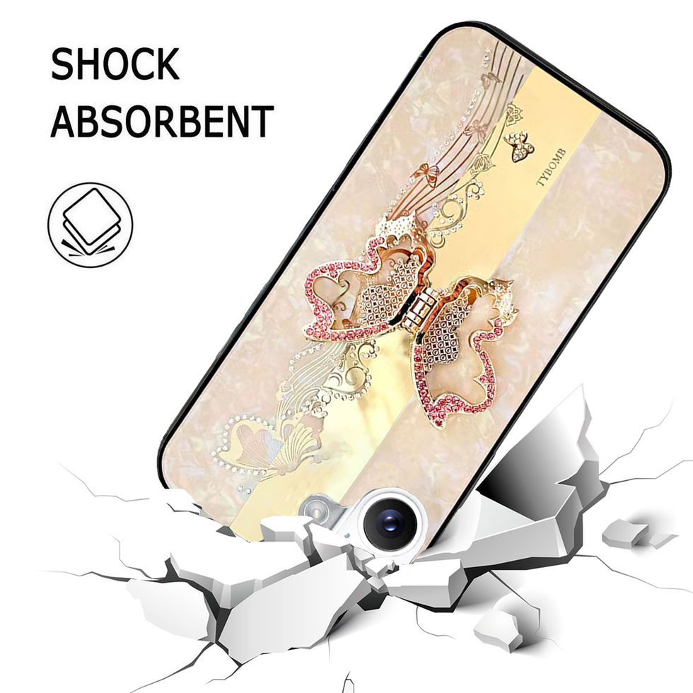 iPhone 17 Rose Gold Holographic Exotic Butterfly Stand Case