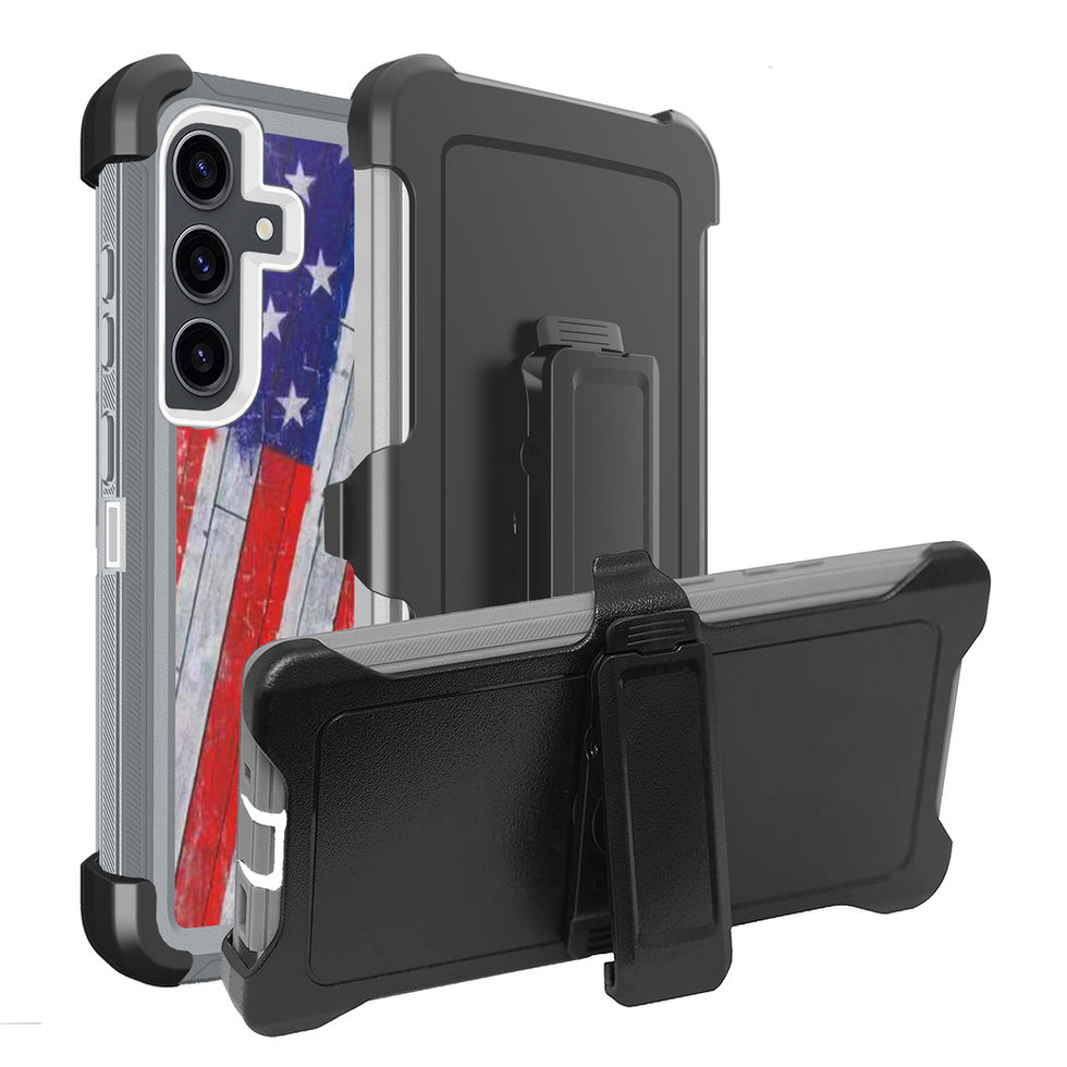 Samsung Galaxy S24 Plus Triple Defender Holster Grey White US Flag Image Case